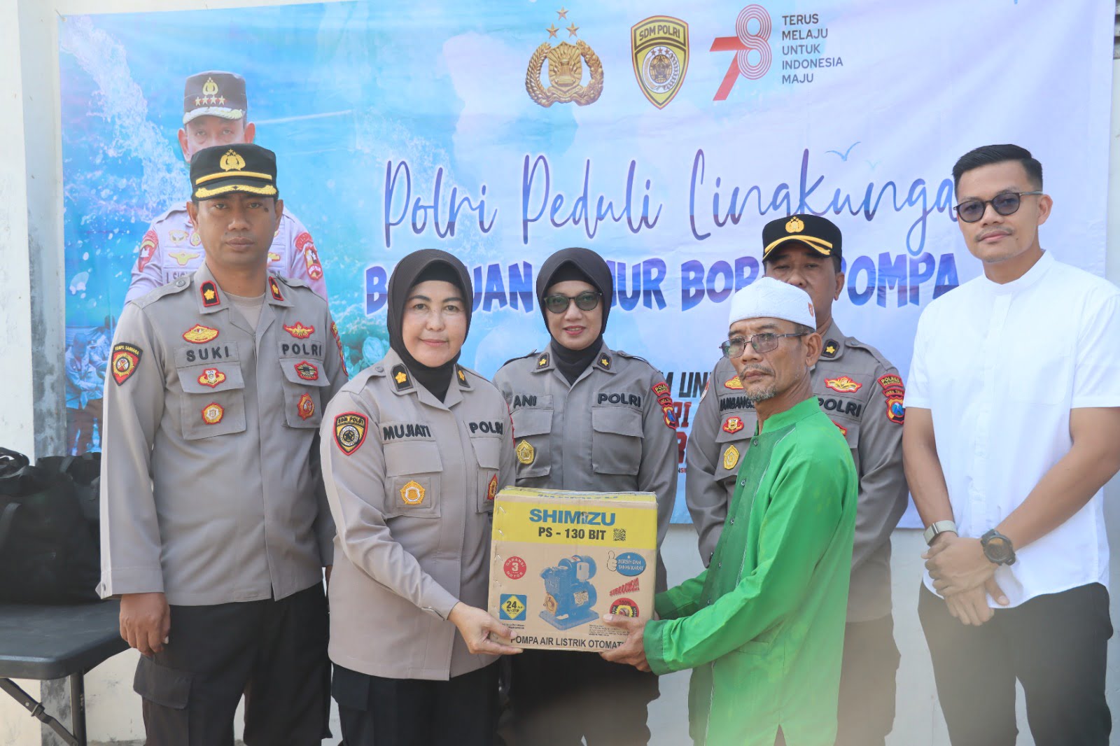 Kapolres Pasuruan AKBP Bayu Pratama Gubunagi, S.H., S.I.K., M.Si. melalui Kabag Ren Polres Pasuruan menjelaskan Bahwa kegiatan Bakti Sosial dalam rangka HUT RI Ke-78 Tahun 2023 dengan Tema “Polri Peduli Lingkungan Hidup” dalam bentuk bantuan pembuatan Sumur Bor dan pemberian Pompa Air yang dilaksanakan secara serentak oleh Jajaran Polri seluruh Indonesia.