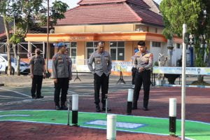 AKBP Putu Kholis Aryana datang didampingi oleh Kasipropam Iptu Saifullah dan Kanitregident Ipda Danny Rizar Ramadhan dalam rangka memeriksa setiap aspek pelayanan yang ada di Satpas Karanglo.